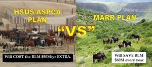 Now the Marr-Downer Plan stipulates a reduction of 300K cattle out of the current 1.5M cattle-equivalents, in exchange for raising the horse-AML by about 140K (from 27K up to 170K). On the surface, this would lower the BLM “revenue” somewhat (down by about $2.5 million from $12.6 million to about $10 million. So, from an investment’s point of view it is a loss, though even so not a heavy one. But why charge the miniscule $1.40 rather than the $22 in the first place? And if reducing the cattle population by 20% is a big deal to BLM financially, then just raise the grazing fee from $1.40 to $1.68 per AUM. We all live with inflation, unless ranchers are immune.